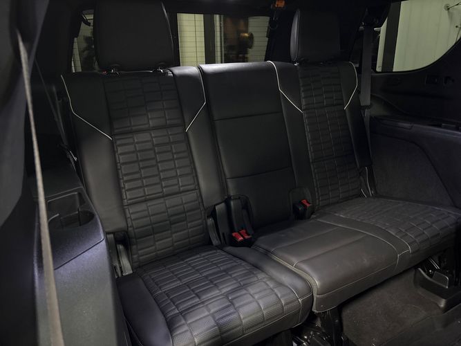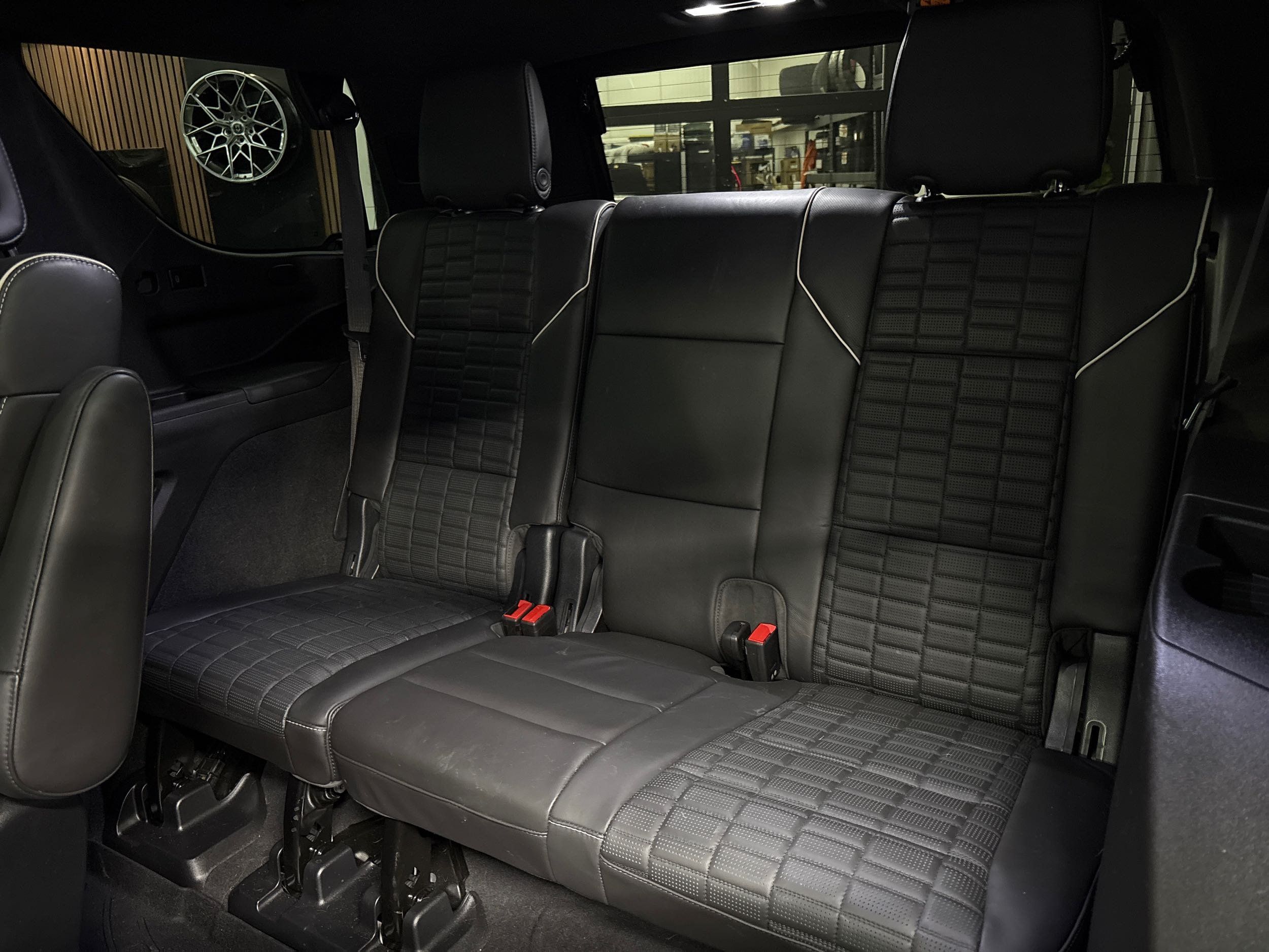 Third-row seatback upholstery: Carpet third-row seatback upholstery