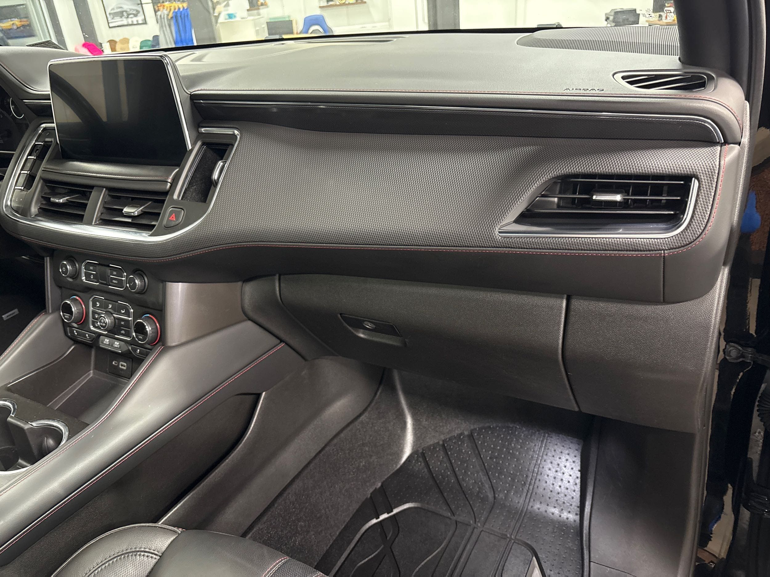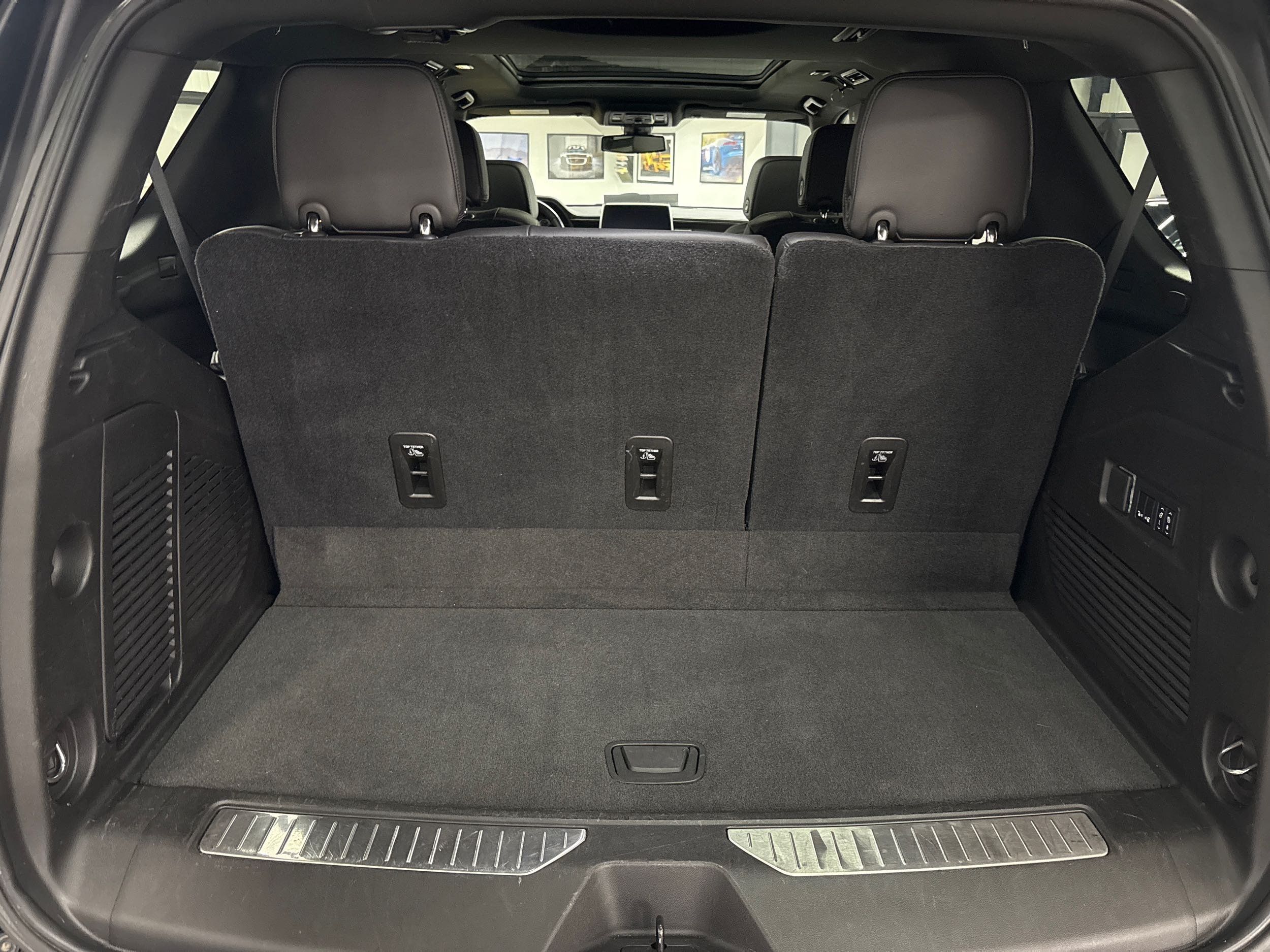 Third-row seatback upholstery: Carpet third-row seatback upholstery